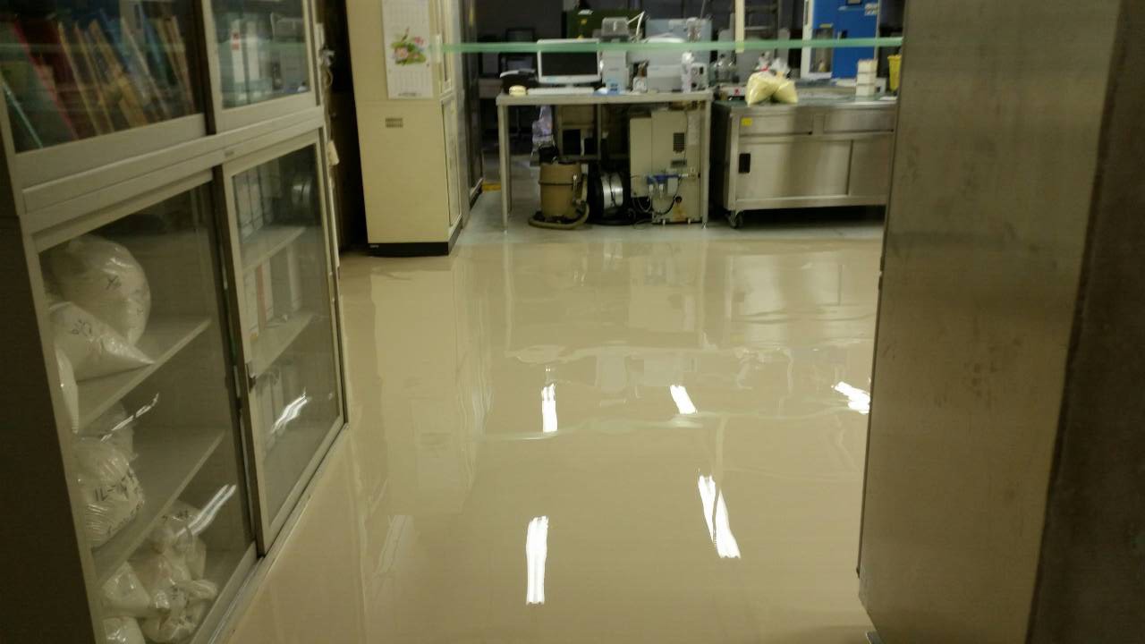 施工後は、床全体に光沢のある滑らかな仕上がりが生まれ、清掃性・耐久性・衛生面が大きく改善されました。