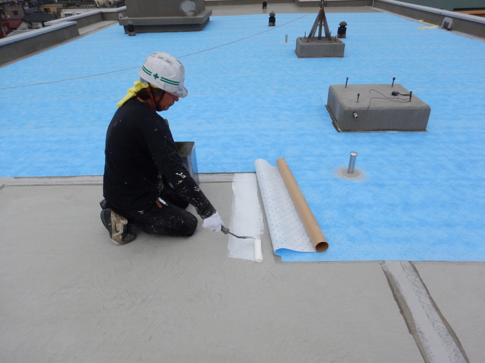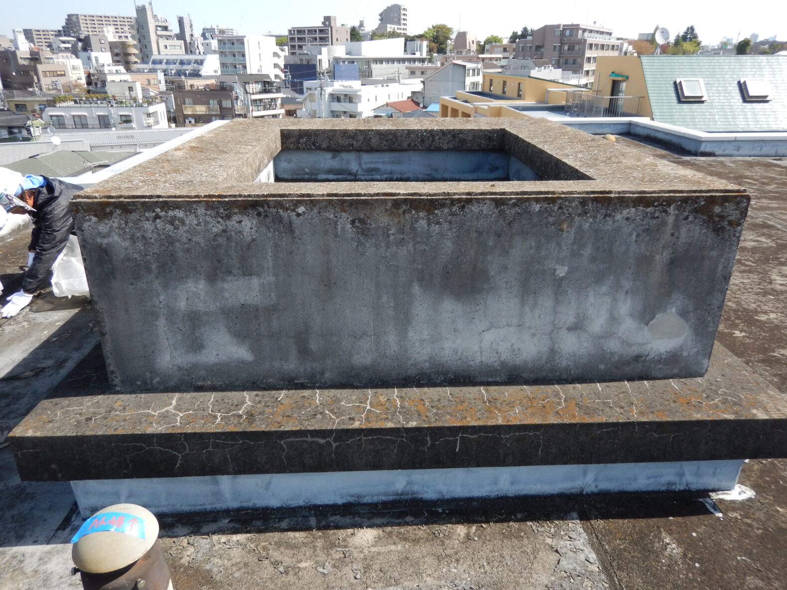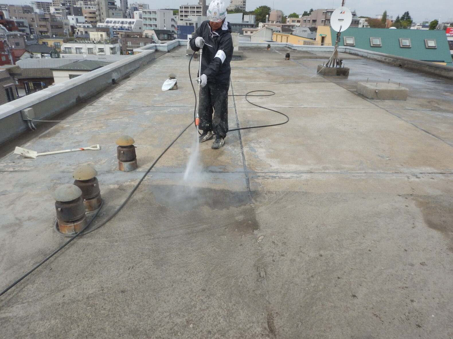 | 施工内容 | 東京都世田谷区用賀にて、約1,400㎡の屋上を対象としたシート防水工事を実施しました。 施工前は、紫外線や風雨の影響により防水層の劣化が進行し、広範囲にわたって浮きやひび割れが見られる状態でした。 このため、部分補修ではなく、全面的な防水改修が必要と判断しました。 採用したのは、塩ビシート防水(機械的固定工法)です。 耐久性・耐候性に優れた塩ビシートを使用し、下地の影響を受けにくく、広い屋上にも効率的に対応できる工法です。 シートの接合部や立ち上がりの処理も丁寧に行い、継ぎ目からの漏水リスクを抑えています。 施工後は、屋上全体がシームレスな防水層で覆われ、美観・防水性ともに大幅に向上。 建物の安全性と長寿命化に貢献する改修工事となりました。 |