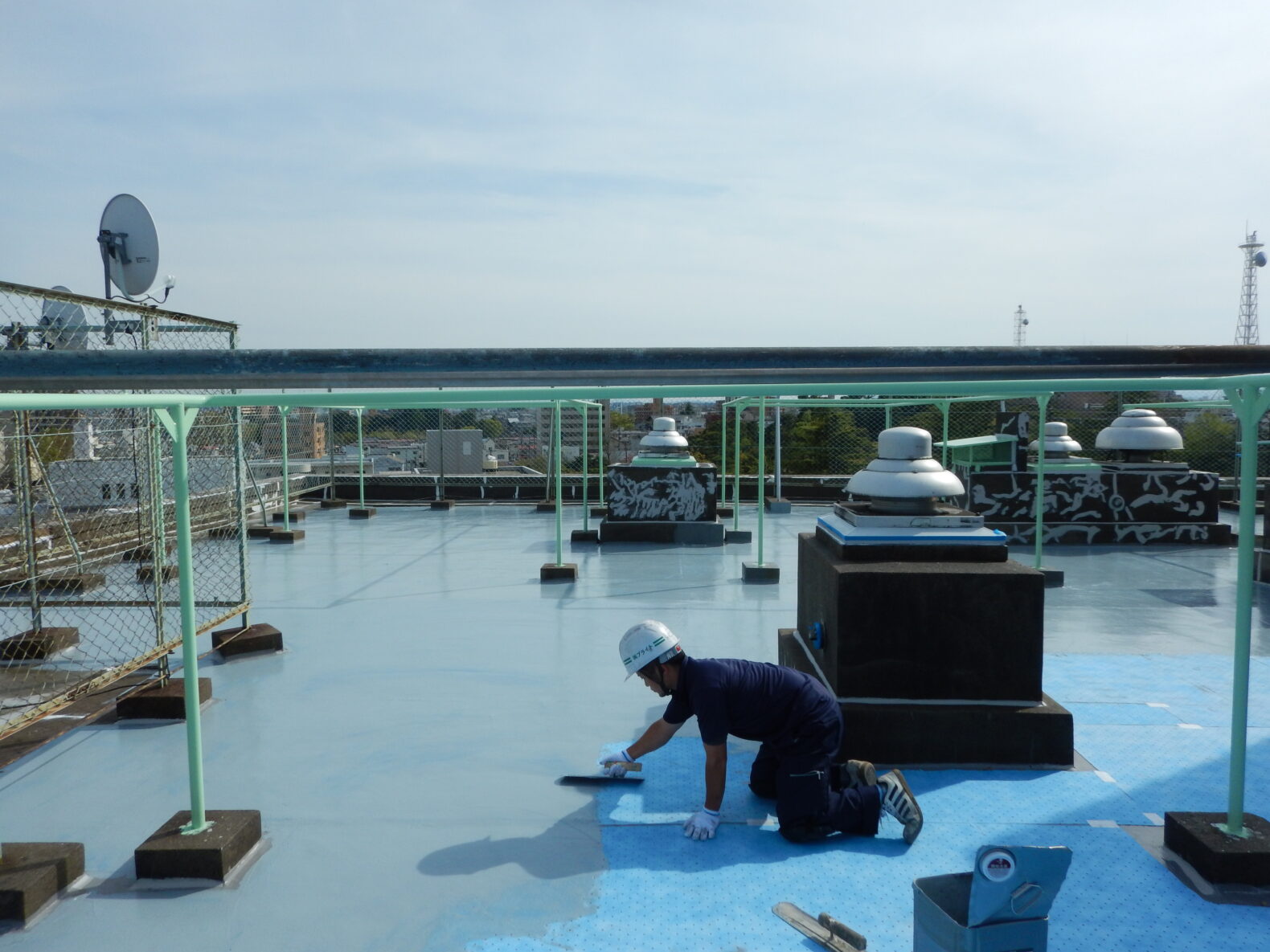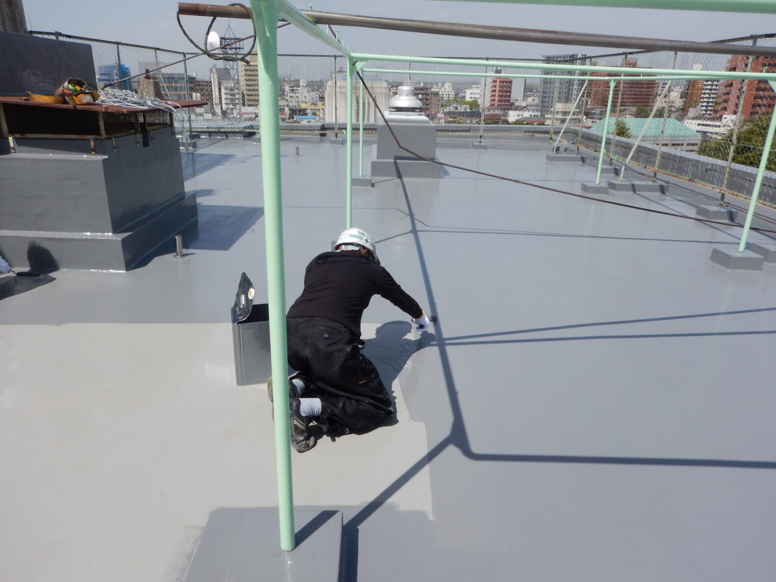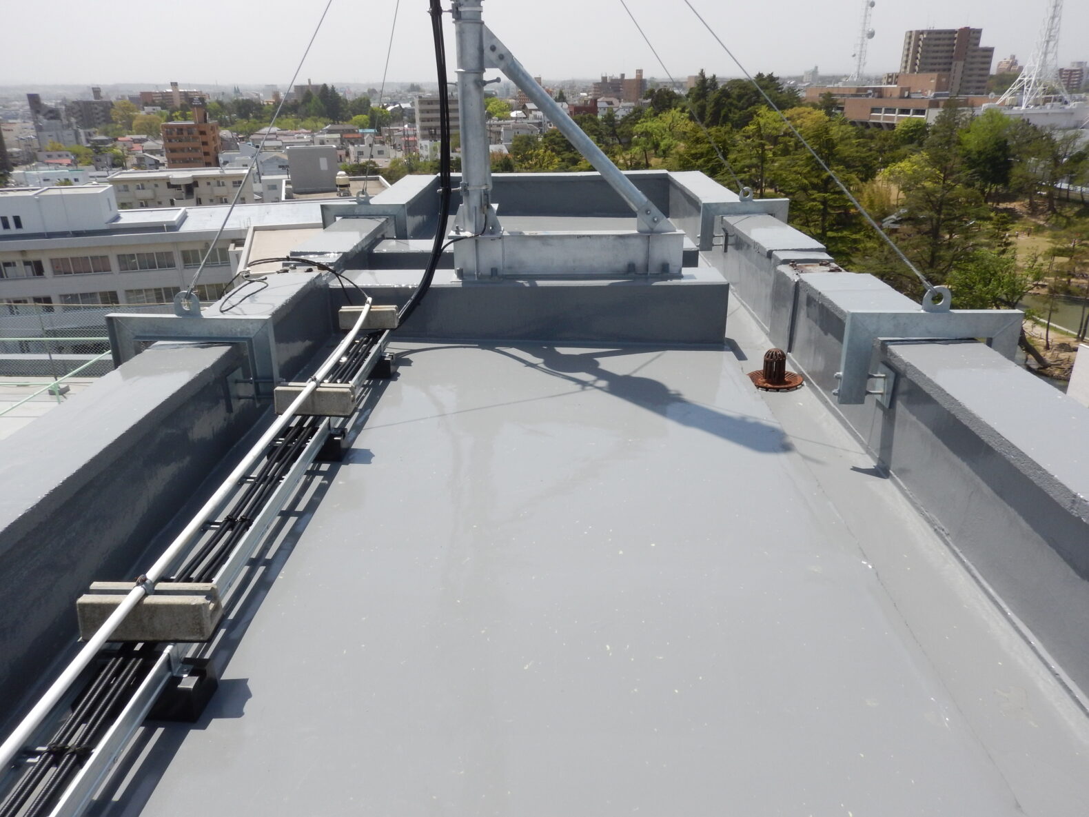 | 施工内容 | 福島県郡山市にて実施した今回の工事では、約500㎡という広さを持つ屋上に対し、ウレタン防水・通気緩衝工法による全面的な防水改修を行いました。 老朽化が進んだビルや施設の屋上は、見えない場所でありながら建物全体の耐久性を左右する重要な部分です。 調査段階では、防水層のひび割れや下地の劣化、排水性の低下が各所で確認されており、放置すれば漏水や構造部へのダメージが避けられない状況でした。 特にこれほどの広さになると、工事の品質だけでなく、作業の安全管理・動線確保・気象条件への柔軟な対応など、現場運営の力も問われます。 施工では、まず下地の処理と補修を徹底し、通気緩衝シートを敷設。 その後、ウレタン防水材を2層に塗り重ねて、シームレスで高耐久な防水層を形成しました。 さらにトップコートで表面を保護し、紫外線・風雨・気温変化に強い仕上がりとしています。 完成後は、表面が美しく整い、排水性と清掃性が向上。 今後の維持管理がしやすくなるだけでなく、建物全体の資産価値向上にもつながる、効果的な改修工事となりました。 |
