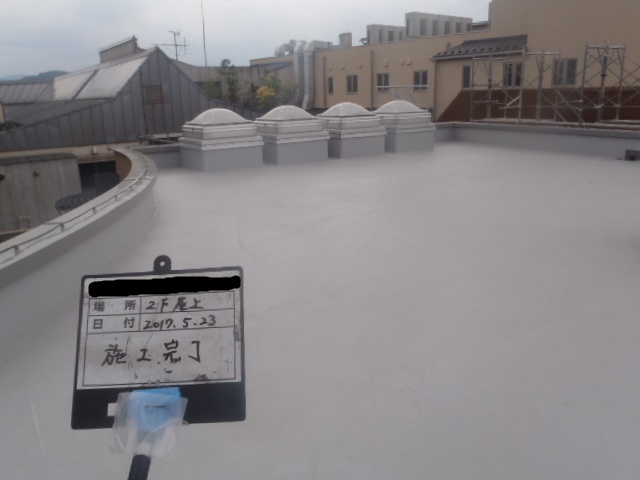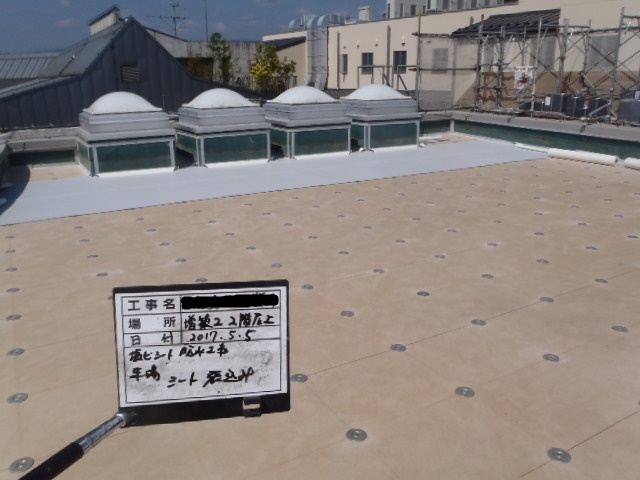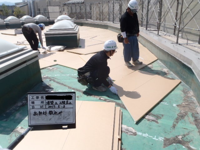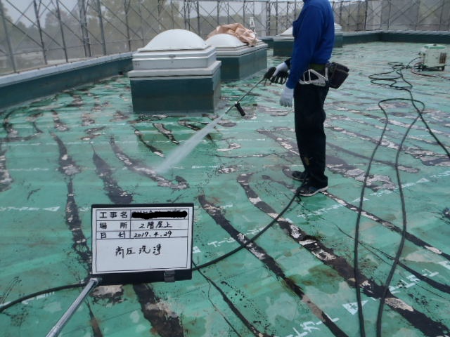 | 施工内容 | 埼玉県所沢市にある医療施設で、屋上防水の改修工事を行いました。 今回の現場は、入院患者や医療スタッフが常時施設内に滞在する環境であったため、騒音・振動・粉塵の発生を最小限に抑えつつ、安全かつ計画的に作業を進めることが求められました。 既存の防水層には劣化による浮きや剥がれが目立ち、放置すれば雨漏りのリスクが高まる状態。しかし撤去を伴う工法では作業音や周囲への負担が大きくなるため、今回は機械固定式の外断熱防水工法を採用しました。 この工法は、既存防水を撤去せずに新たな防水層と断熱材を重ねる方式で、解体作業を伴わないため、静音施工が可能です。さらに断熱性能の向上も同時に図れるため、室内環境の安定や冷暖房負荷の軽減にもつながります。 施工では、絶縁シートを敷設後、断熱材を規則的に配置し、防水シートを専用の機械でしっかりと固定。 300㎡の屋上全面にわたり、精度の高い施工を短期間で実現しました。 仕上がりは平滑で美しく、排水性能や今後のメンテナンス性にも優れた状態に。 日常的に人が出入りする医療施設において、機能性と安全性を両立した改修工事となりました。 |
