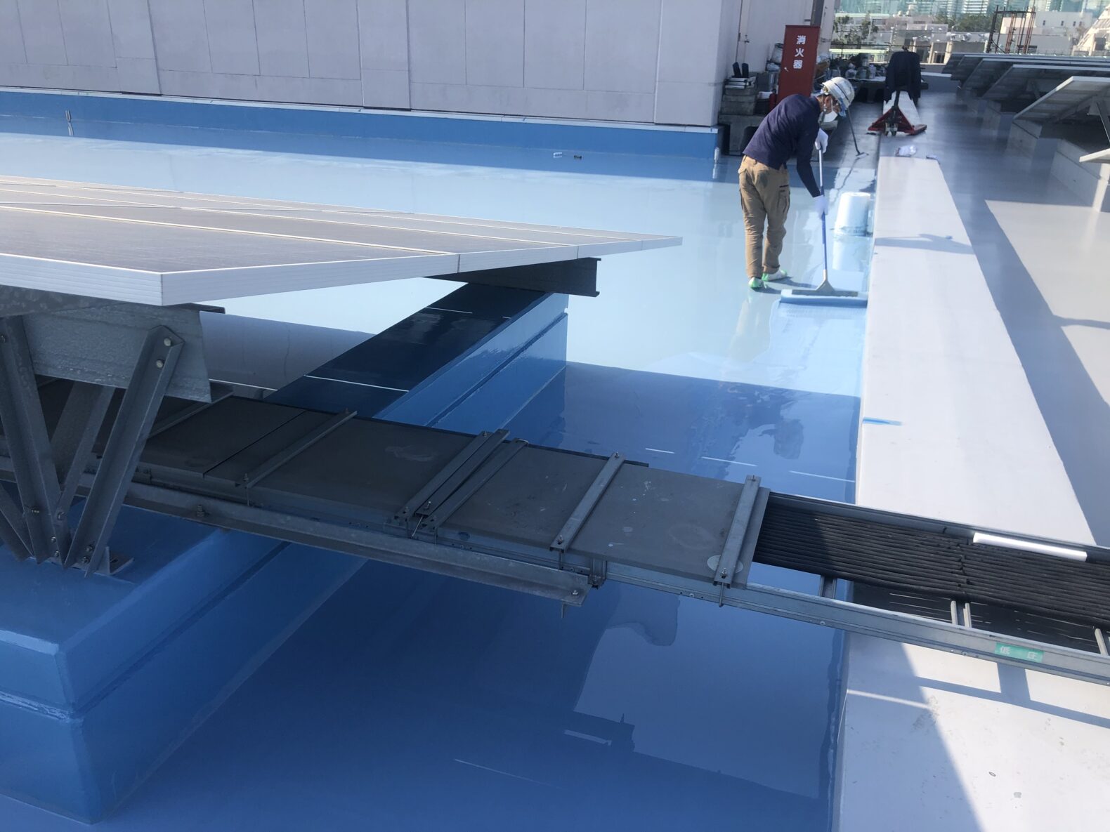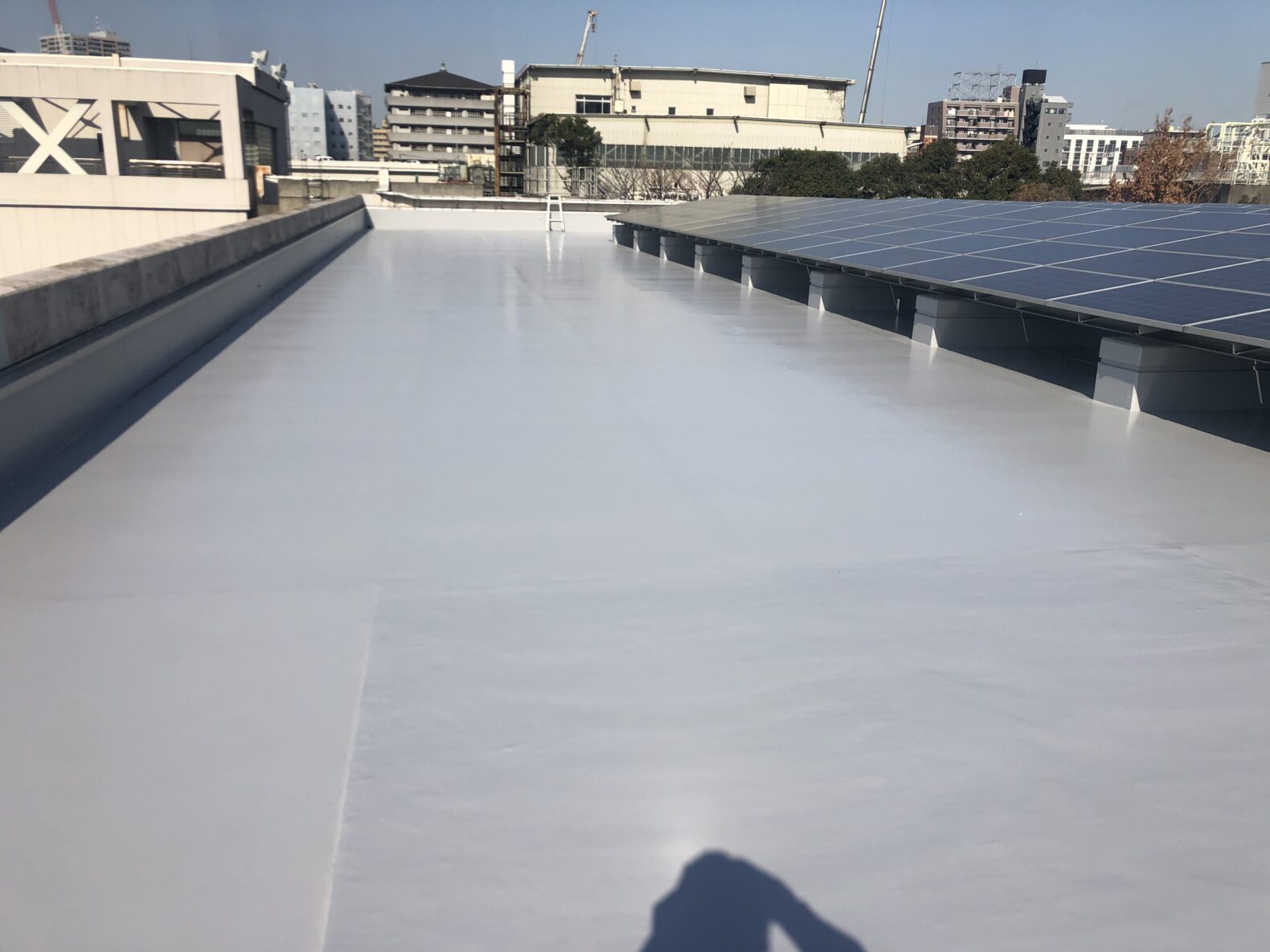| 施工内容 | 本工事は、神奈川県の入札案件として受注した公共建物の屋上防水工事です。 当社としても過去最大規模の施工面積となり、大変やりがいのあるプロジェクトでした。 建物は横幅100mを超える大規模施設で、全景写真に収まりきらないほどの大きさ。 施工面積もこれまでに経験のない広さでしたが、関係各所との連携のもと、安全かつ計画的に作業を進め、無事に竣工を迎えることができました。 工期は2024年10月から2025年2月まで。 着工時は大雪などの天候リスクが懸念されましたが、幸いにも暖冬の影響で天候に恵まれ、予定通りのスケジュールで引き渡しを完了しています。 |