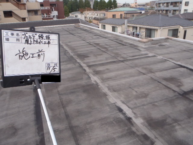 | 施工内容 | 今回の現場では、屋上230㎡の塩ビシート防水工事を行いました。 施工前の屋上は、経年劣化により防水層の傷みや表面の汚れが目立ち、防水性能が大きく低下している状態でした。 今回採用した塩ビシート防水工法は、既存下地に直接施工できる機械的固定工法で、建物への負担を抑えながら短期間で仕上げが可能な工法です。 耐候性・耐久性に優れ、メンテナンス性にも優れているため、都市部の建物に多く採用されています。 シートの重ね部や立ち上がり部分なども丁寧に処理し、屋上全体を均一に防水層でカバーしました。 施工後は、ご覧のように清潔感のある明るい仕上がりとなり、防水性能も確実に回復。 建物の保全と長寿命化に貢献する工事となりました。 |
